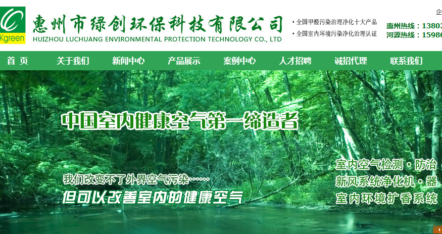 惠州绿创环保科技有限公司是(全国招商加盟连锁企业)分别在惠州地区、淡水、河源紫金等驻点直属子公司及工程部。公司一直致力于室内空气污染的防治、室内空气净化产品的研制与开发、面向全国招商加盟等业务,旨在为顾客提供环保、安全、健康的产品,以改善工作和生活空间的空气品质,提高健康水平和生活质量。